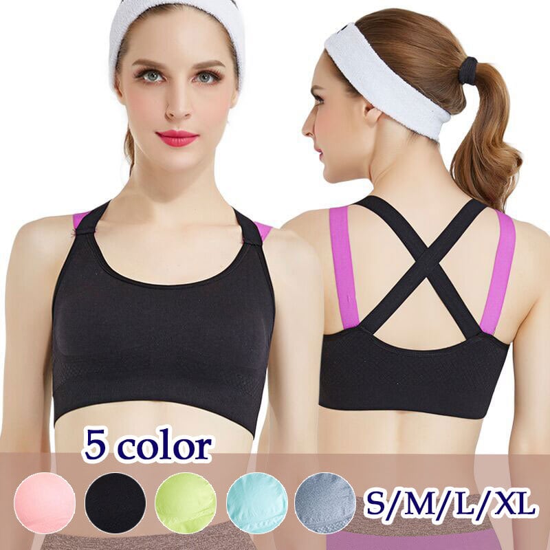 スポーツブラ カラーストラップ ブラジャー フィットネスブラ 揺れない カップ付き シンプル 無地 ヨガ インナー ブラジャー バストアップ 自宅 | navy-navy
