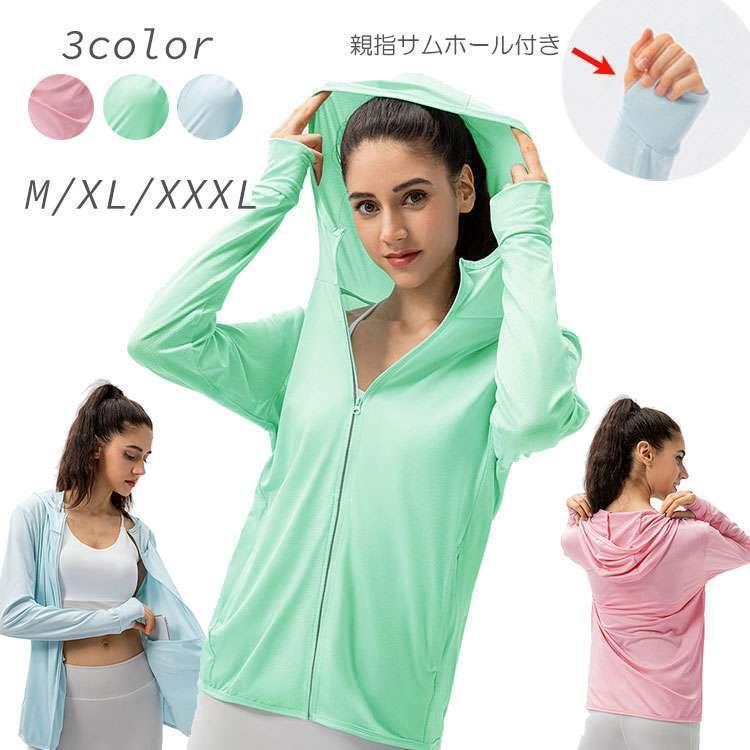 レディース フィットネスウェア パーカー 指穴付き ジップアップ 前開き 大きいサイズ サムホール ヨガウェア トップス 長袖 無地 吸汗速乾